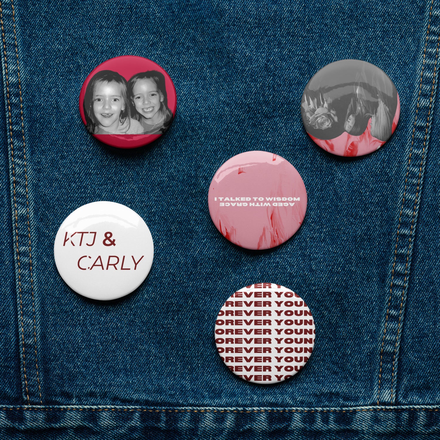 Set of "Forever Young" Pin Buttons. Express yourself in a meaningful way with top-quality pin buttons. They’re lightweight, sturdy, and easy to put on. With a scratch and UV-resistant coating and a glossy finish, these pin buttons are made to last. Show off the things you care about and add a pop of personality to your clothing or accessories with vibrant pin buttons.